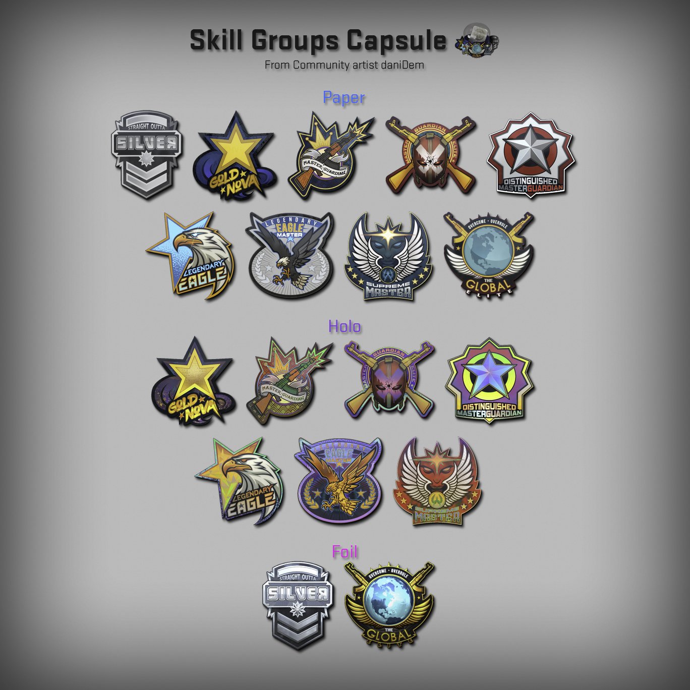 - Dodano kapsułę z naklejkami, które reprezentują poszczególne rangi we wzorach zaprojektowanych przez daniDem.