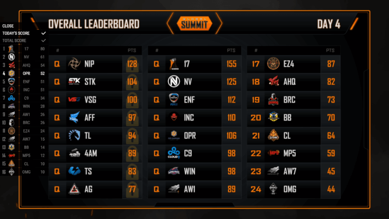 Po 6 decydujących mapach w grupie Sudden Death, spośród 16 drużyn wyłoniono 8 najlepszych, które awansowały do finału rozgrywek. Po emocjonujących starciach na mapach Miramar i Erangel, obronną ręką z grupy wychodzą następujące drużyny: