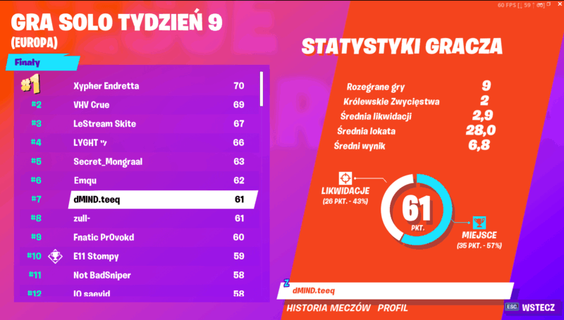 Pozostałym Polakom nie poszło tak dobrze. W pierwszej setce znalazł się jedynie richart_, który uplasował się na 97 miejscu z dorobkiem 45 punktów i tym samym zgarnia 700$. Za tydzień ostatnia szansa na zakwalifikowania się do wielkich finałów Fortnite World Cup w Nowym Jorku. Zawodnicy zawalczą ze sobą w formacie duo o ostatnie, wolne miejsca na turnieju. Awansuje najlepsza czwórka, a rywalizacja będzie bardzo zacięta. Pula nagród w Fortnite World Cup wynosi 30 milionów dolarów!