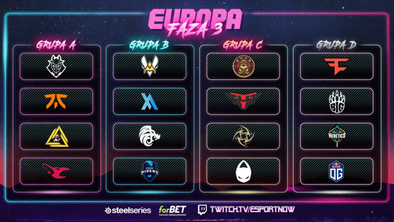 - Grupa D: BIG, FaZe Clan, OG, Heretics
