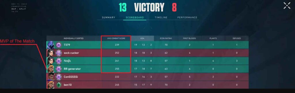 Wielu graczy błędnie zakłada, że najważniejsze są fragi. Tymczasem w Valorancie MVP to zawsze gracz z najwyższym ACS – który niekoniecznie musi mieć najwięcej zabójstw czy najlepszy KDA. ACS jest odzwierciedleniem Twojej wszechstronnej efektywności na polu bitwy.