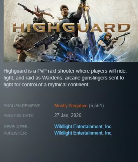 Highguard odpalił serwery i… od razu dostał obuchem w łeb. Free-to-play’owy raid shooter ledwo zadebiutował na Steamie, a już został zjechany na “Mostly Negative”. Nie minęły nawet trzy godziny od startu, a wleciało ponad 9 tysięcy recenzji, z czego ponad 7 tysięcy negatywnych. To nie jest normalny feedback, to jest klasyczny review-bombing.