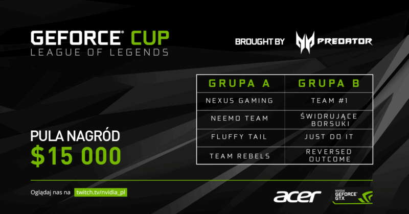 Świdrujące Borsuki – Reversed OutcomeZ dwóch grup do ćwierćfinałów awansują w sumie cztery drużyny, po dwie najlepsze z każdej. Następnie zmierzą się one z zaproszonymi ekipami: Schalke 04, Mysterious Monkeys, Sector One oraz EURONICS Gaming. 1/8 finału odbędzie się 29 października, natomiast półfinały i finał dzień później. Całość będzie transmitowana na kanale NVIDIA Polska na twitch.tv.